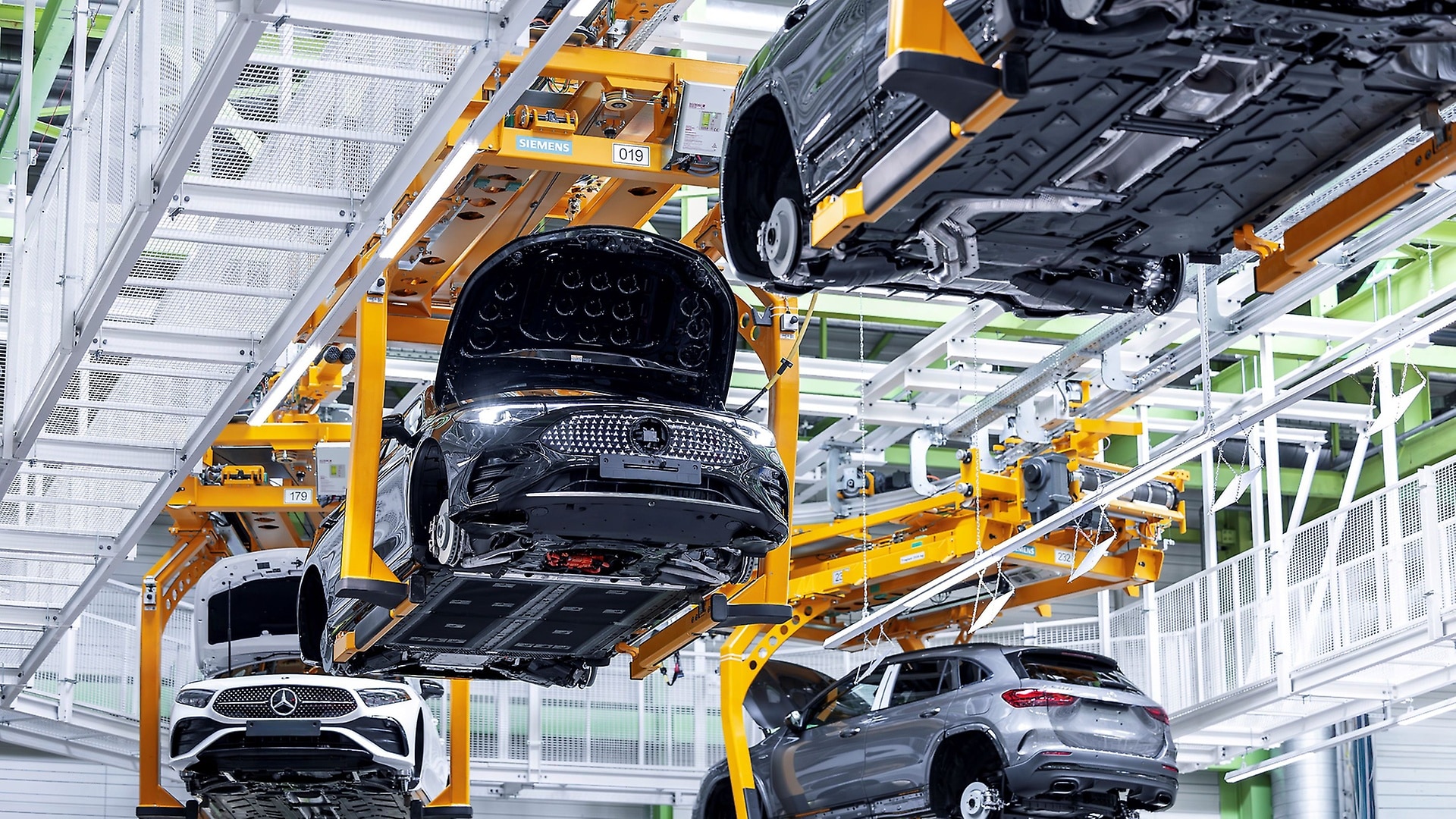 Elektrofahrzeuge der Produkt- und Technologiemarke EQ laufen flexibel vom gleichen Band wie Fahrzeuge mit konventionellen Antrieben.