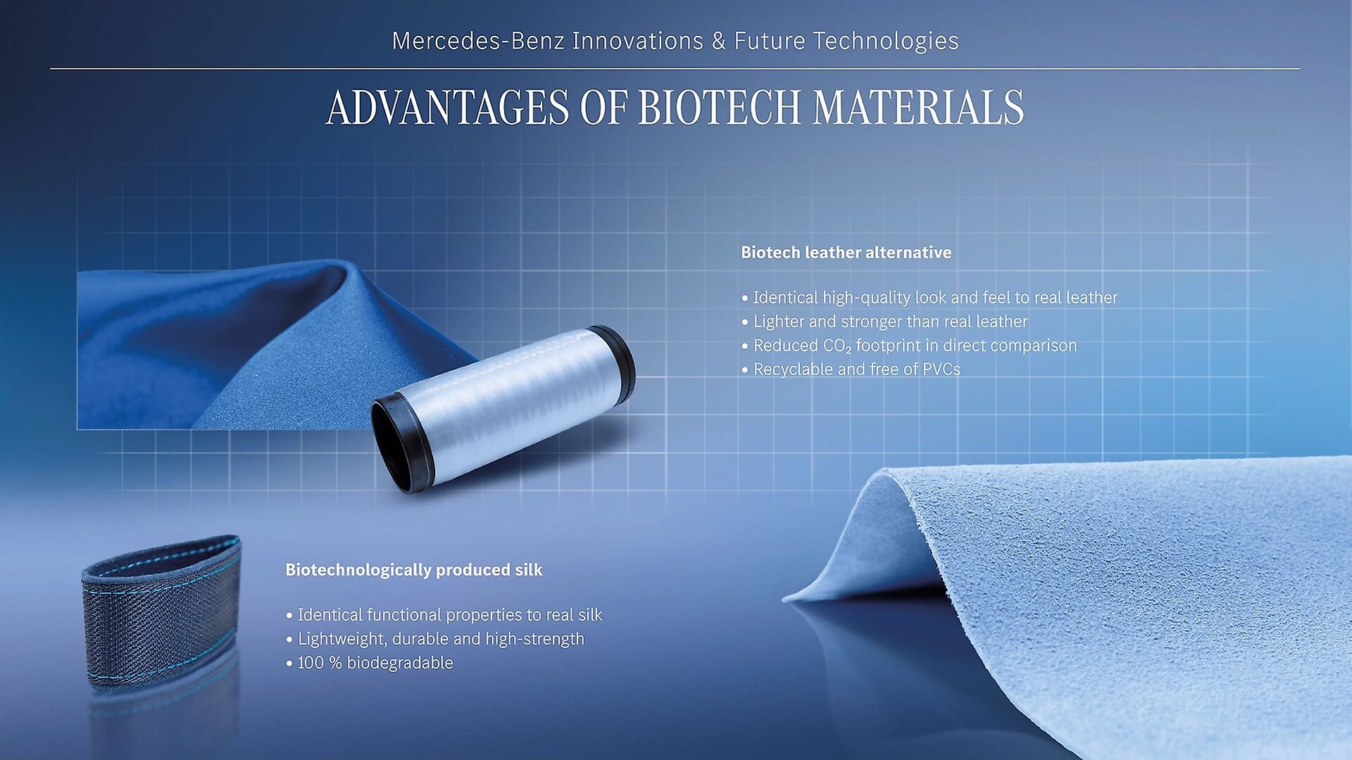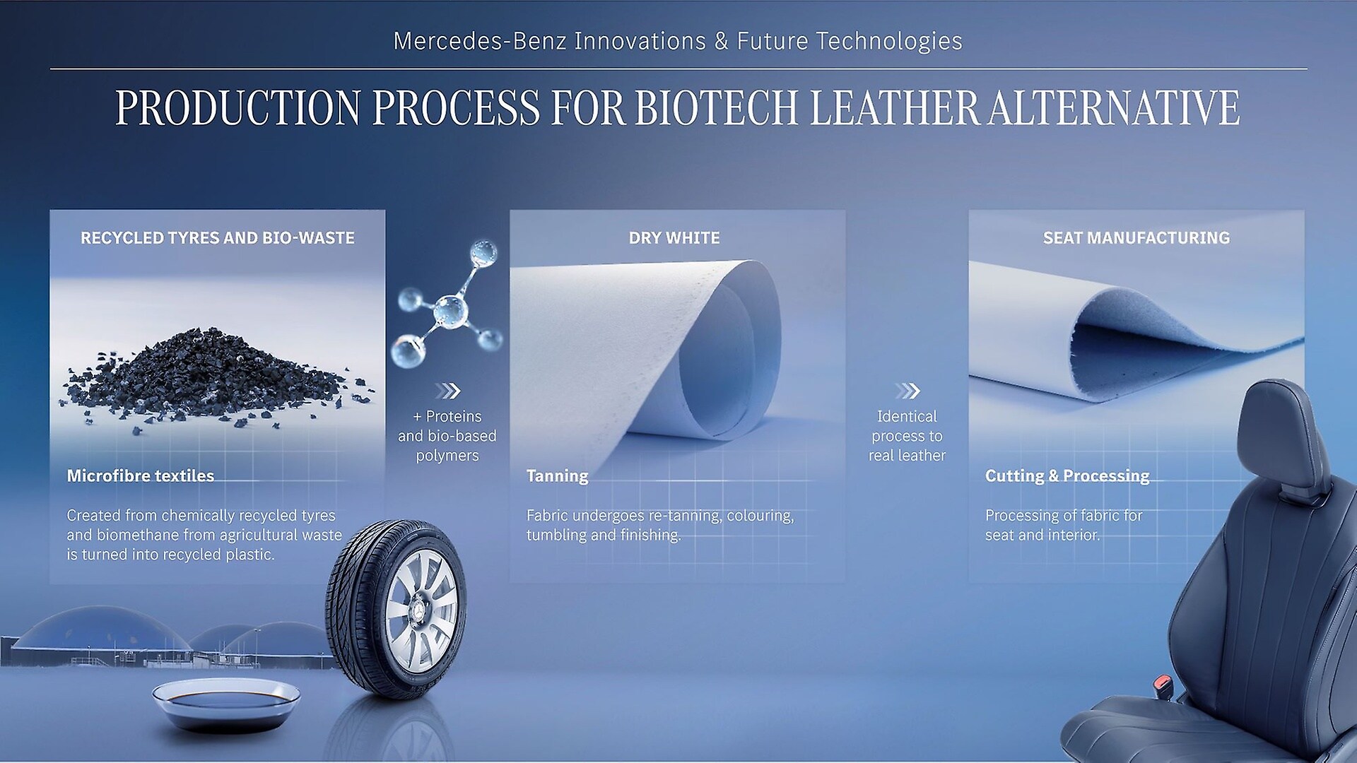 Before a material is used in series-production Mercedes-Benz vehicles, it must undergo a series of checks and intensive long-term testing. This ensures that it fulfils the company’s own high standards in terms of functional quality as well as luxury look-and-feel. Surface materials, especially on the seats, must have a certain structural strength to avoid the formation of creases, ripples, or pressure marks. They must be able to withstand temperature differences of around 100 degrees, direct sunlight, abrasion from denim, products such as sunscreen and disinfectants as well as perspiration. And they must do so over a long period of time, without becoming unstable, discolouring or emitting odours. It is equally important that they are easy to clean, waterproof and suitable for decorative stitching, embossing and dyeing in different colours. Seat upholstery must also ensure good heat transfer for seat heating and good air permeability for ventilation.